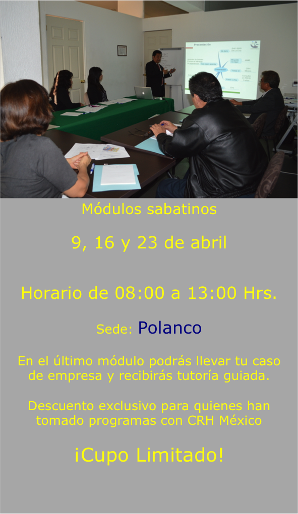 Costo $6,500.00 + IVA Fecha límite de inscripción: martes 5 de abril